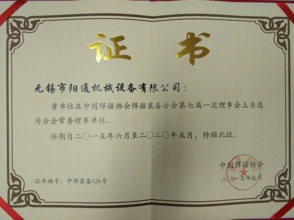 熱烈祝賀無錫市陽通機(jī)械設(shè)備有限公司連任中國焊接協(xié)會(huì)焊接裝備分會(huì)常務(wù)理事單位