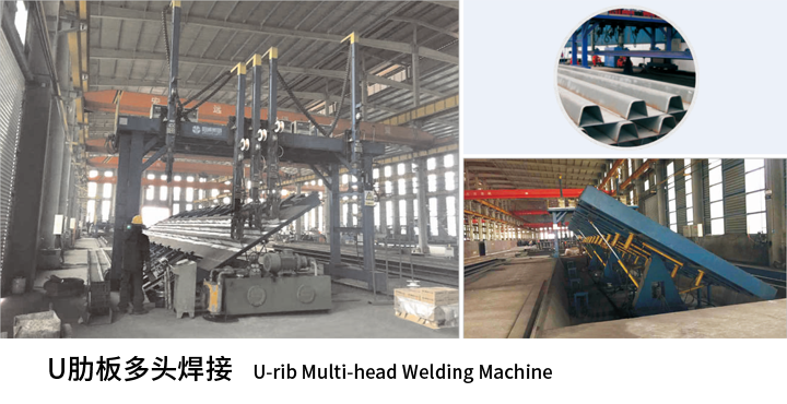 隨著大型鋼結(jié)構(gòu)橋梁工程的日益增多,橋面U肋板單元的生產(chǎn)制備因其批量大、工期緊、成型及焊接質(zhì)量要求高,實(shí)現(xiàn)自動(dòng)化生產(chǎn)的必要性越發(fā)顯現(xiàn)。我司在為山海關(guān)橋梁廠、武船重工、上海振華港機(jī)、中泰橋梁等國(guó)內(nèi)多家橋梁生產(chǎn)廠家提供了各類橋面板單元生產(chǎn)設(shè)備。橋面板單元結(jié)構(gòu)如下圖: